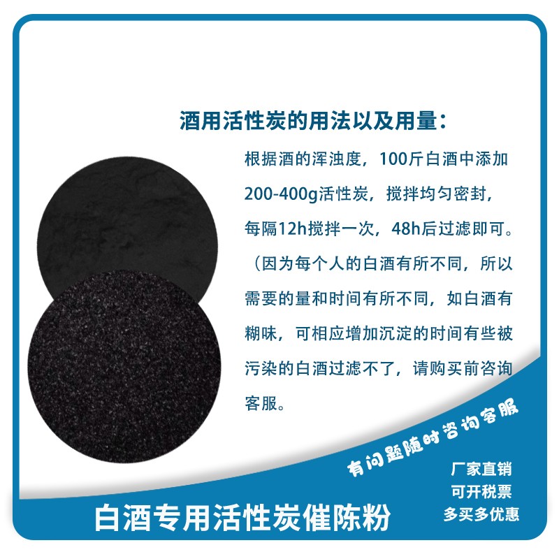 酒用活性炭主要用于酒類生產的后期處理,它在酒中主要吸附產生異味、異臭的雜醇油、糠醛、二甲基硫等有機物及醛類物質。酒用活性炭的既能能使除濁處理后的酒保持原酒風味,又能在一定范圍內保證酒液不復渾濁。