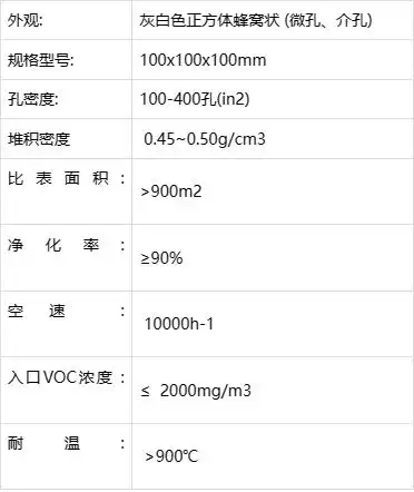 五,性能參數(shù),以下是蜂窩狀VOC吸附沸石分子篩性能技術參數(shù):